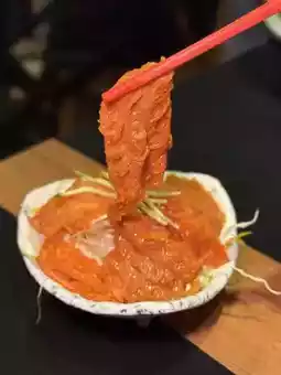 The sashimi-grade beef is evenly marinated. A thin slice of beef, shredded with a few onions, and dipped in a little onion sauce, melts in your mouth, incredibly tender and full of fat. Definitely worth a try.