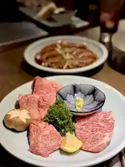 First, the Japanese Wagyu shoulder platter is a highlight. The marbling of the Wagyu is evenly distributed, and cooking it to medium rare brings out its perfect flavor. With simple seasoning, you can fully enjoy the rich taste of Wagyu.