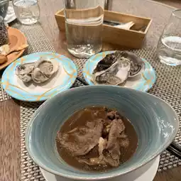 In addition to the sukiyaki, the seafood section is a feast for the eyes and palate, offering a variety of fresh oysters, shrimp, and fish. Each bite bursts with fresh, sweet flavors that are simply irresistible. For hot dishes, the pan-seared mackerel and pork skewers are equally delightful surprises. After the meal, you can enjoy Sai Kung's night view from the terrace, with twinkling lights creating a dreamy atmosphere.
