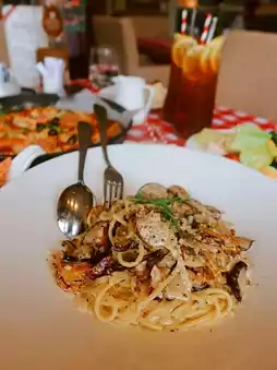🍝 Scallop Carbonara Pasta: The pasta is al dente and well-coated in sauce. The scallops are fresh and aromatic, while the creamy carbonara sauce is rich and indulgent, complemented by a generous amount of mushrooms.