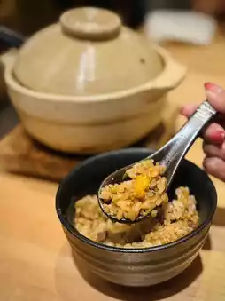 ❥Their pot-stirred rice here is very famous, the ingredients are not stingy at all, a lot of wagyu beef and four large pieces of fresh and sweet seaweed😍 There are rice crumbs at the bottom of the pot.