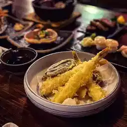 The tempura box contains shrimp and vegetables, the fried batter is not too thick, it is hot and crispy😌