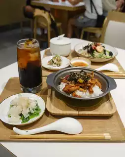 Now doing eel season, there are a variety of eel menu options 😍, this eel rice attracts me the most, because on the iron pot, the bottom will have a little rice crust 🍚, with the bun fish sauce fragrance. The set will be served with appetizers and drinks, this mountain su mixed embroidery mushrooms is very special 🍄, embroidery mushrooms first time to eat, very refreshing, the sauce is refreshing and a little spicy 🌶. For the drink, I ordered Da Hong Pao Fairy Grass Tea. The tea here is usually very fragrant🫖. This cup is served with bouncy fairy grass. It's worth a try.