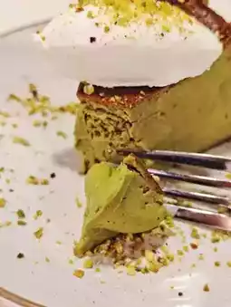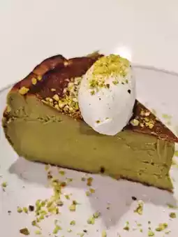 Finally, the dessert is pistachio Basque cake🍰, the outer layer has a little burnt aroma🔥, the inside is moist and soft😋, the pistachio flavor is quite fragrant, the sweetness is slightly sweet, should be quite suitable for people who are afraid of sweet😆.