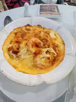 Cheese baked shrimp udon🍜 Super big bowl😍 There is also a lot of threaded cheese🧀 And the number of shrimp is also not less☺️ Udon Q bouncy😝 In addition to full of cheese flavor😗 also has the freshness of shrimp👍🏻