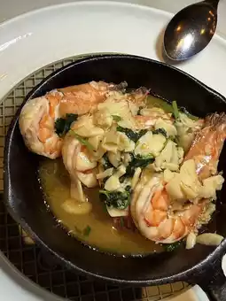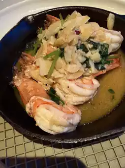 - Garlic Tiger Prawns with Spicy Herbs 🦐: Fresh and large tiger prawns with a rich garlic flavor that fills the air. The sauce is so delicious you’ll want to scrape the plate clean—sooo good!