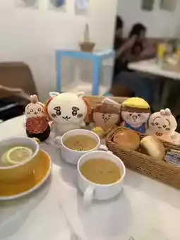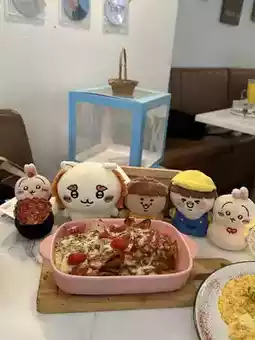 On Sunday, a weekend off, I took my friends Puffy, Usagi, and Shisa to Chiikawa Day in Tsim Sha Tsui. We then went to a nearby Western restaurant with a simple, earthy-toned decor. It exuded a hipster vibe and was packed with young people and families for dinner, dessert, and coffee. The prices were reasonable and the atmosphere was comfortable, making it a great place for a meal.