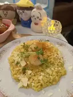 The pumpkin cream risotto was rich and smooth. The chef steamed the pumpkin until pureed, then simmered it with sautéed onions, risotto, white wine, and chicken broth. Finally, cream, cheese, and butter were added and mixed until the rice was cooked through. The chicken absorbed the broth until it became soft and chewy, and the Hokkaido scallops added the perfect finishing touch.