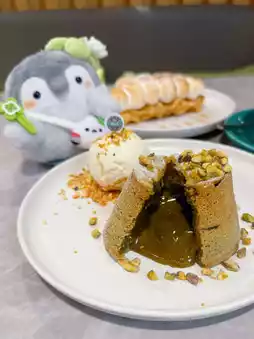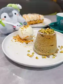 Dessert is simply a foul: pistachio heart too soft cut open to have melted burst out, nutty fragrance is very prominent, with smooth vanilla ice cream, hot and cold intertwined really great ❤️ Another homemade cotton candy croissant waffle is quite special, crispy outside and soft inside, cotton candy slightly sweet and soft, selling is quite eye-catching😚