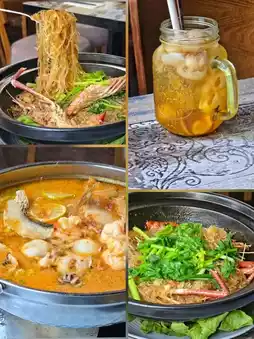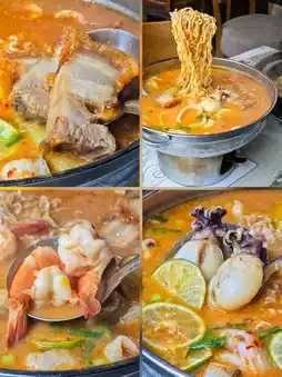 The soup base comes with two options, and we chose the classic Thai Suki flavor. The sweet, sour, and spicy taste blends perfectly, making it incredibly appetizing. The seafood includes shrimp, baby squid, and fish fillets, along with Thai-style roasted pork belly. The ingredients are rich, and the Mama noodles absorb all the flavors from the soup and ingredients, delivering an authentic Thai taste.