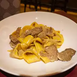 It's the highlight of the night 😍 The chef took out a huge cheese wheel, using wide spaghetti, each strip can be dipped in cheese, black truffle sauce, then sprinkled with freshly shaved black truffle, rich and smooth, happiness!