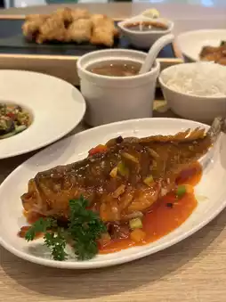 The sweet and sour sauce pan-fried yellow flower fish is fried until golden crispy, the sweet and sour sauce tastes very cool, the sauce is very appetizing, the set also includes golden and silver egg lettuce, bamboo shoots crabmeat sea cucumber soup and a bowl of white rice, very rich!