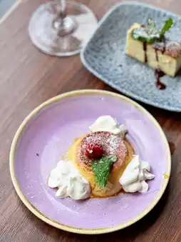 On weekends, the restaurant offers a variety of brunch options, including appetizers, main courses, and desserts, with vegetarian menus available.