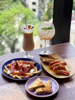 Situated on a high floor, the restaurant features floor-to-ceiling windows offering stunning views of the city skyline. The elegant and sophisticated ambiance makes it perfect for dates or group gatherings. The rooftop area serves as a small open-air bar, ideal for casual drinks with friends.
