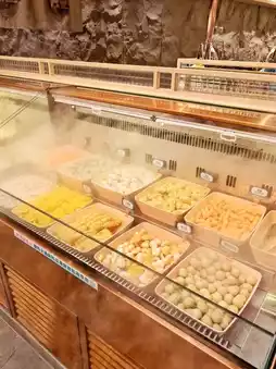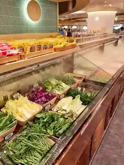 The buffet area 💪 In addition to a variety of hot pot 🍲 ingredients, there are also a variety of cooked food 🔥, among which a variety of Chinese dim sum 🥟 is my favorite ❤️, especially the siu mai standard can beat the restaurant!