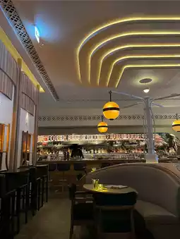 The bar features a sleek setting with soft lighting that brings a relaxing atmosphere while offering a wide variety of cuisines.