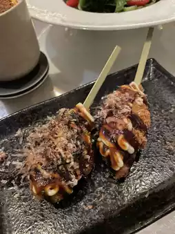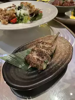 The scallops are smooth and fresh, and the grilled seaweed has a burnt flavor.