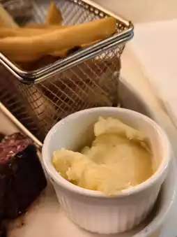 The steaks came with fries and mashed potatoes. The thick-cut fries 🍟 were golden and crispy, while the mashed potatoes were smooth and creamy.