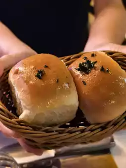 The homemade thyme garlic butter bread was soft and airy, with the thyme and garlic adding a fragrant touch.