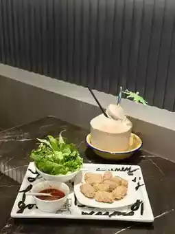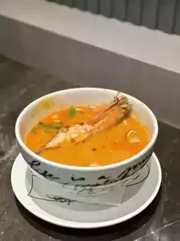 Next, the Thai-style giant prawn tom yum soup with glass noodles had a rich and flavorful broth, perfectly balancing sour and spicy notes to whet the appetite. The dish came with a plump giant prawn, which was quite tender. The glass noodles absorbed all the soup's essence, making it incredibly tasty!