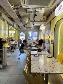 Once you get out of Song Kwun Tai Station, you're not eating Thai food! This time I accidentally found a glowing yellow Pizzeria💛, no exaggeration, the whole shop is yellower than Uncle McDonald🤣. The environment is like a foreign small restaurant, playing relaxing English songs, and also has a pizza pattern wall and the words "Kowloon City", great for taking pictures! I heard that it is a handmade pizza shop run by foreigners. The dough is fermented for 24 hours and there are Hong Kong-style flavor options. It is really unique in Kowloon City, a Thai cuisine paradise! You can smell the charcoal aroma and cheese evil spirit even before you eat it 🧀!
