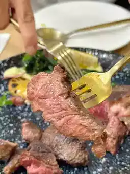 We also ordered a wagyu shoulder rib eye steak, four very large pieces, we ordered 50% cooked, cut into the middle of the steak pink tender😋