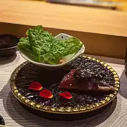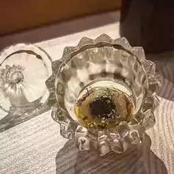 The chestnut crab is fed with chestnuts, and the crab meat has a chestnut flavor. It is mixed with soil vinegar, caviar, gold foil and basil flowers. It tastes sour with the fragrance of basil flowers and a little salty.