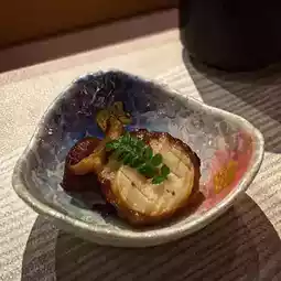 After the fish skin is lightly roasted, the fish oil is richer and has a burnt aroma. It is served with seaweed tsukudani sauce and Japanese cabbage. The taste is sweet and the combination is very novel.