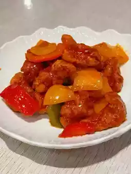 The sweet and sour pork with pineapple pairs wonderfully with rice. The meat quality is quite good, and overall, it’s very satisfying.