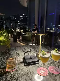 • Variety of drinks menu: cocktails, beer tap, bar snacks are good, the night choose a beautiful cocktail + air + view, the perfect combination.
