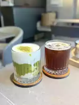 The combination is special, and the overall match is quite good. Tofu🤍 is very smooth, so drinking it with matcha latte will give you a smoothness. The fragrance of tofu and the richness of matcha go well together, making them complement each other.