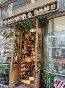 Under the Central escalator, a section of the flyover near Tai Kwun, there is an antique grocery store with a green facade with a striking sign of Feather & Bones, which is easily reminiscent of his Western restaurant. But from this storefront, a table, stool, kitchen layout is not 😅