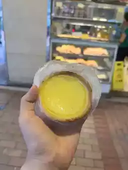 They have several branches in Hong Kong, selling Hong Kong-style bread. I bought an egg tart with a cookie crust, and they also have a puff pastry crust. The egg tart was delicious, with a fragrant filling. The flavor of egg and milk filled my mouth with a slight sweetness, not greasy at all. It was truly delicious.