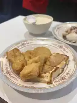 This is a specialty bean product store with a very cute decor. The walls depict the traditional bean product-making process. I ordered Kung Wo Three Treasures, frozen tofu pudding, and rice noodle rolls. The Gonghe Three Treasures consists of tofu, fried bean curd, and fish curd. The golden tofu tastes ordinary, while the fried bean curd is crispy on the outside and soft on the inside, with every bite bursting with fishy flavor. The fish curd has a distinctive tangerine peel flavor.