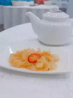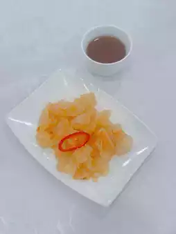 4. **Chilled Jellyfish Head** 🪼 - HK$58 per order 💰. The jellyfish head is crisp and refreshing 😗, complemented by a mildly spicy and tangy sauce 🌶️, making it a great appetizer 😋.