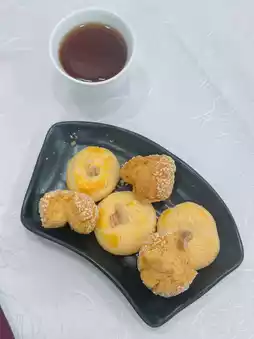 5. **Double Delight Dim Sum** 🍪 - HK$30 per order 💰. The walnut cookies are crispy and crumbly 😆, but unfortunately, the golden sesame balls were a bit soggy 🥺.