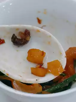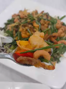2. **Homestyle Stir-Fry Supreme** 🥢 - HK$138 per order 💰. Packed with ingredients 😍 like garlic chives 🥬, preserved radish, scallops 🐚, dried shrimp 🍤, silverfish 🐟, bell peppers, cashews 🥜, and baby squid 🦑. Stir-fried to perfection with a smoky wok aroma 🔥, it’s savory and flavorful 🤤.