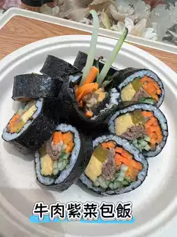 If you like to eat Korean seaweed rice, you must eat beef seaweed rice. The ingredients are fresh and rich 😛 There are also melted Korean egg rice and Korean waffles