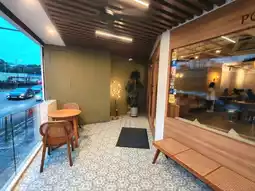 Potluck Eatery is located in the Tsim Sha Tsui area and features a minimalist industrial wooden design. The spacious interior includes a large mural and small wooden stools, providing a relaxing atmosphere for guests.