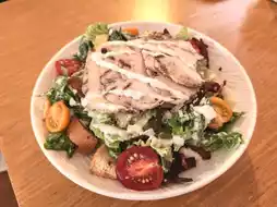 (The chicken breast Caesar salad is healthy, with generous portions of chicken breast and fresh salad greens.)