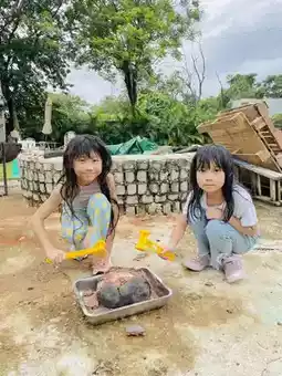 From Yuen Long Station, we took a minibus to this hidden gem tucked away on a small trail in Yuen Long. Our departure day was a mix of sunny and rainy, but we couldn't resist our urge to explore, so we bravely set off as planned. Surprisingly, we had the entire 100,000-foot secret area to ourselves! And we had a blast! :) It was my first time picking longans from the trees, chopping wood, making beggar chicken for firewood, and then having a blast playing in the water on the grass!
