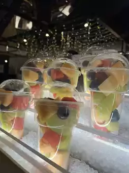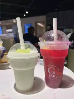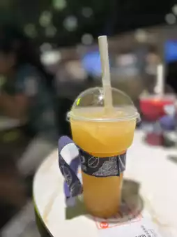 Fruit tea with mango grains, sweet flesh, fruit tea base with a little slightly sour because of the lemon, goes well.