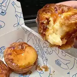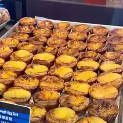 Hong Kong egg tarts from Bake House are another very famous shop with many branches. Some require a reservation. The Bake House photos show them as incredibly soft and smooth. Freshly baked in the early summer, they're incredibly delicious! The filling is perfectly oozing with the perfect amount of sweetness. Anyone visiting Hong Kong should definitely try this dessert. If you're traveling alone, you can get one or two for 85 baht. Some branches require you to reserve the entire box.
