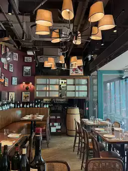 There are so many things to discover in Sheung Wan ~ This time I chose Nissa la Bella at 10-14 Upper Police Station, a French restaurant with a Parisian feel! 😍 Brown and red booths, retro posters, stylish bar seats, whether it's a girlfriend gathering or a romantic date chill, are so beautiful that you want to keep taking pictures✨, great for taking pictures!