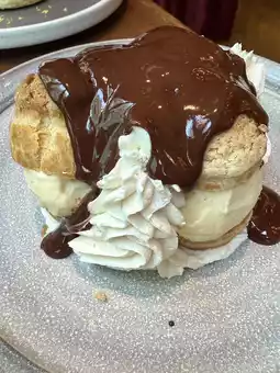 French puffs: Linman chocolate sauce + creamy cream + ice cream, great! The portion is generous and sweet to the heart💗