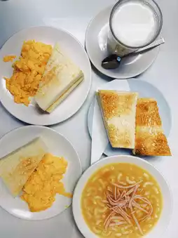 Their famous scrambled eggs are rich, buttery, and unbelievably smooth — melting into crispy toast for the ultimate comfort bite. Add a cup of Hong Kong–style milk tea (hot or iced), and you’ve got the perfect local start to your day.