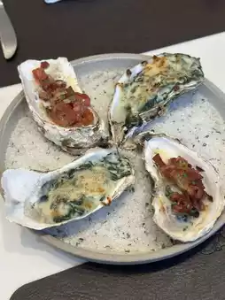 The baked oysters come in two flavors: creamy herb spinach cheese and smoked bacon. Both are flavorful and aromatic.