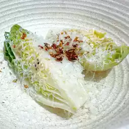 The mini romaine lettuce salad was very crisp and fresh, with rice vegetables on top I had to set aside to eat, but there was still a lot of savory cheese so it was not bland and still very tasty.