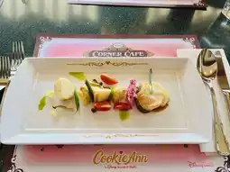 For the appetizer of the day, we ordered seafood prawns 🦐sabaon with lobster sauce and pan-fried shrimp and steamed squid 🦑rolls with mango salsa and Sprite four-lime sauce. The refreshing sauce paired with the fresh seafood made the appetizer first-rate. The other two appetizers include pumpkin soup with crab claws or pan-fried vegetable meat potato cakes with white mushroom salad.