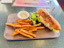 Among the seven main dishes, we ordered the Main Street Special Lobster Bun with homemade tomato bun, crab roe, lettuce, pumpkin celery, onion, sweet potato fries and curry salad sauce. The sweet potato fries are very delicious, the lobster buns are meaty, and the tomato buns are also very flavorful. The other one is the pan-fried scallop and prawn wide noodles 🍝 with crab roe, mushroom and lemongrass sauce. The scallops are big and taste like sashimi, very fresh, sweet and tender, and paired with lemongrass sauce, it is not greasy at all.